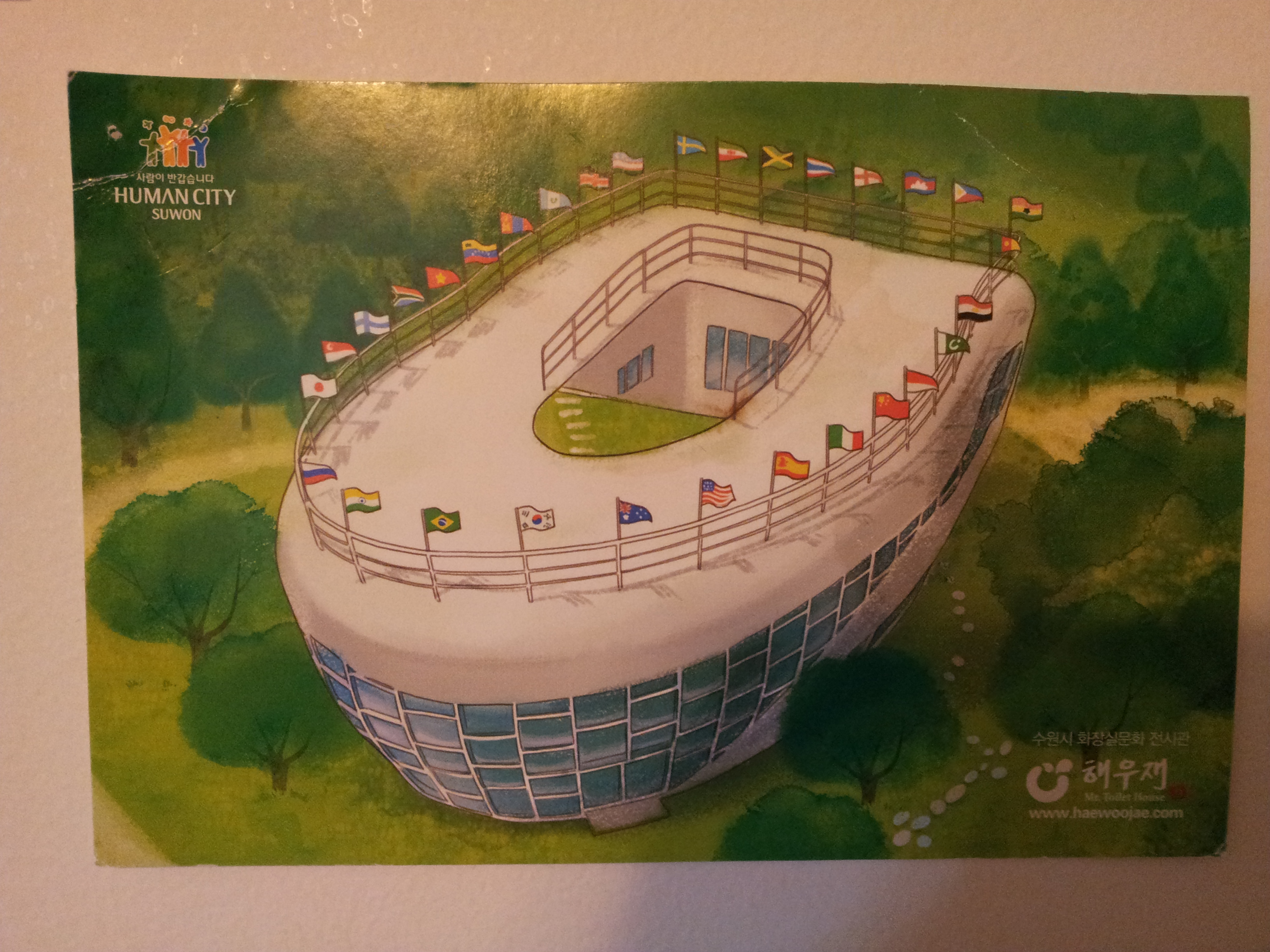 The toilet-shaped museum itself was built by a former mayor of Suwon, Sim Jae-duck or “Mr. Toilet”. Sim improved the sanitation of public washrooms in the city and founded the World Toilet Association (now World Toilet Organization) to improve the cleanliness of toilets internationally. The building contains some interesting displays, like a wall of unique toilet symbols from around the world. If you’re interested in learning more about the history, I’d recommend looking into it online (or learning Korean), because most of the information is in Korean.