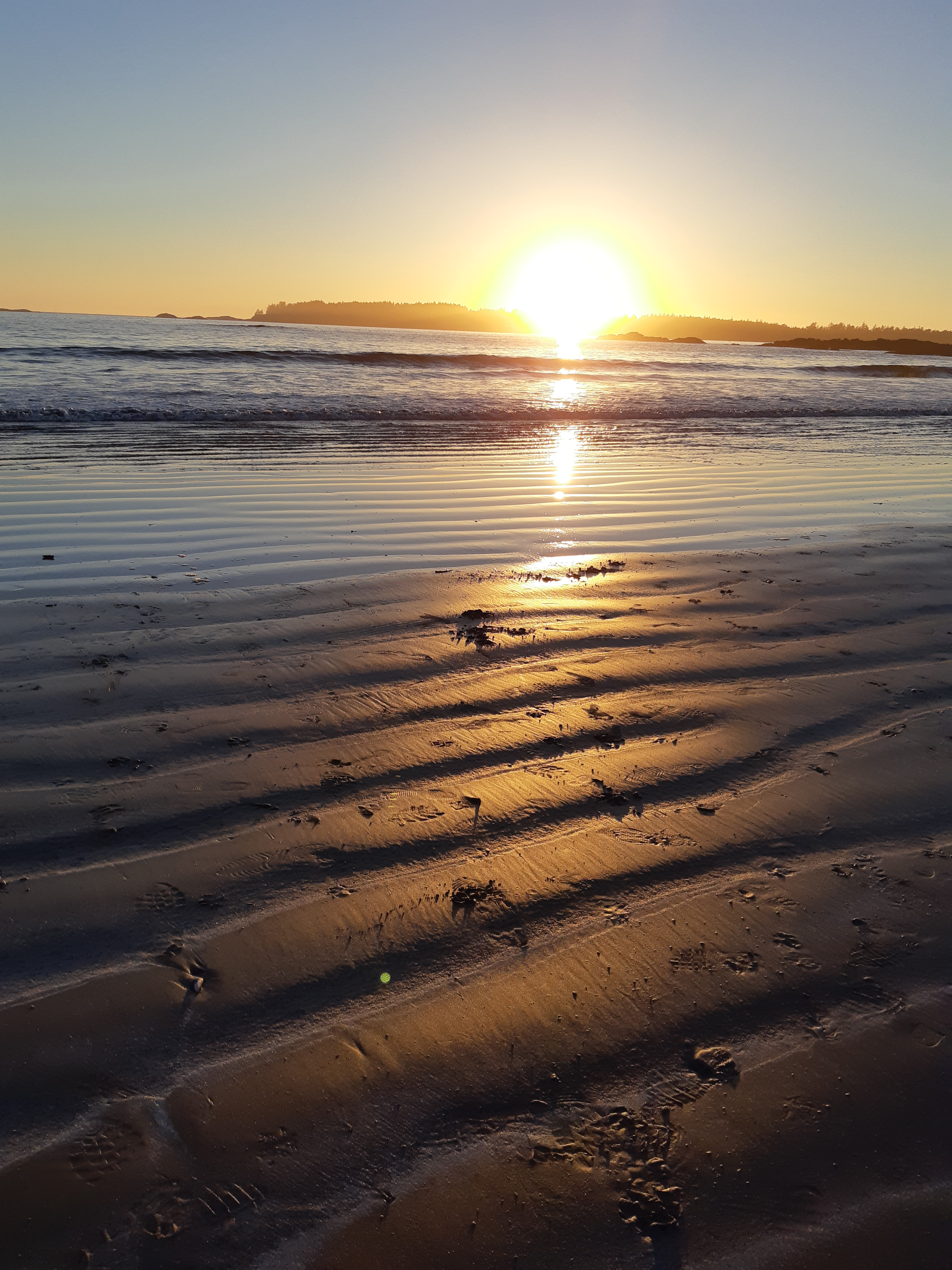 For sunset this evening, try Tonquin Beach. You need to hike a very short trail (maybe 10 minutes), which starts within walking distance from town. If you time it right, you may get to see the sun peeking through the trees at the golden hour.