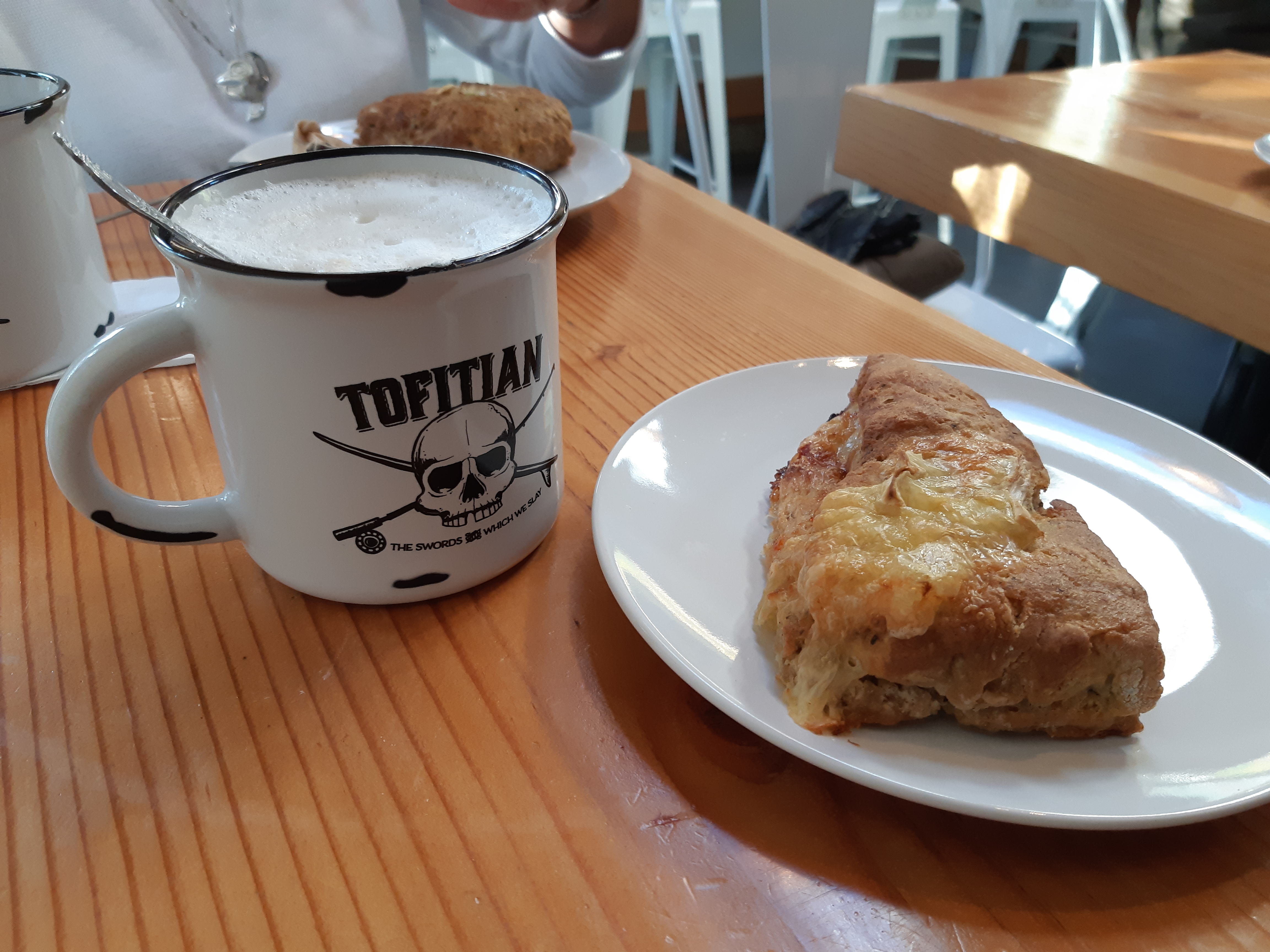 Get your morning meal and caffeine kick at the Tofitian Cafe. (Coincidently, this cafe is in the same complex as Tacofino so… jk jk not for breakfast! But, you know, you could grab something for the road!) So, the Tofitian: it’s been a coffee hub in the area for almost 20 years (much longer than the taco truck that I won’t name again), and has a cool logo that will make you want to buy merch. (… I bought a tumbler.) Their coffee’s great, their cafe is cosy, and their baked goods area heavenly (prosciutto and brie scones? fig muffins with a dab of cream cheese icing? Oui, merci!). Eat in or grab something for the road.