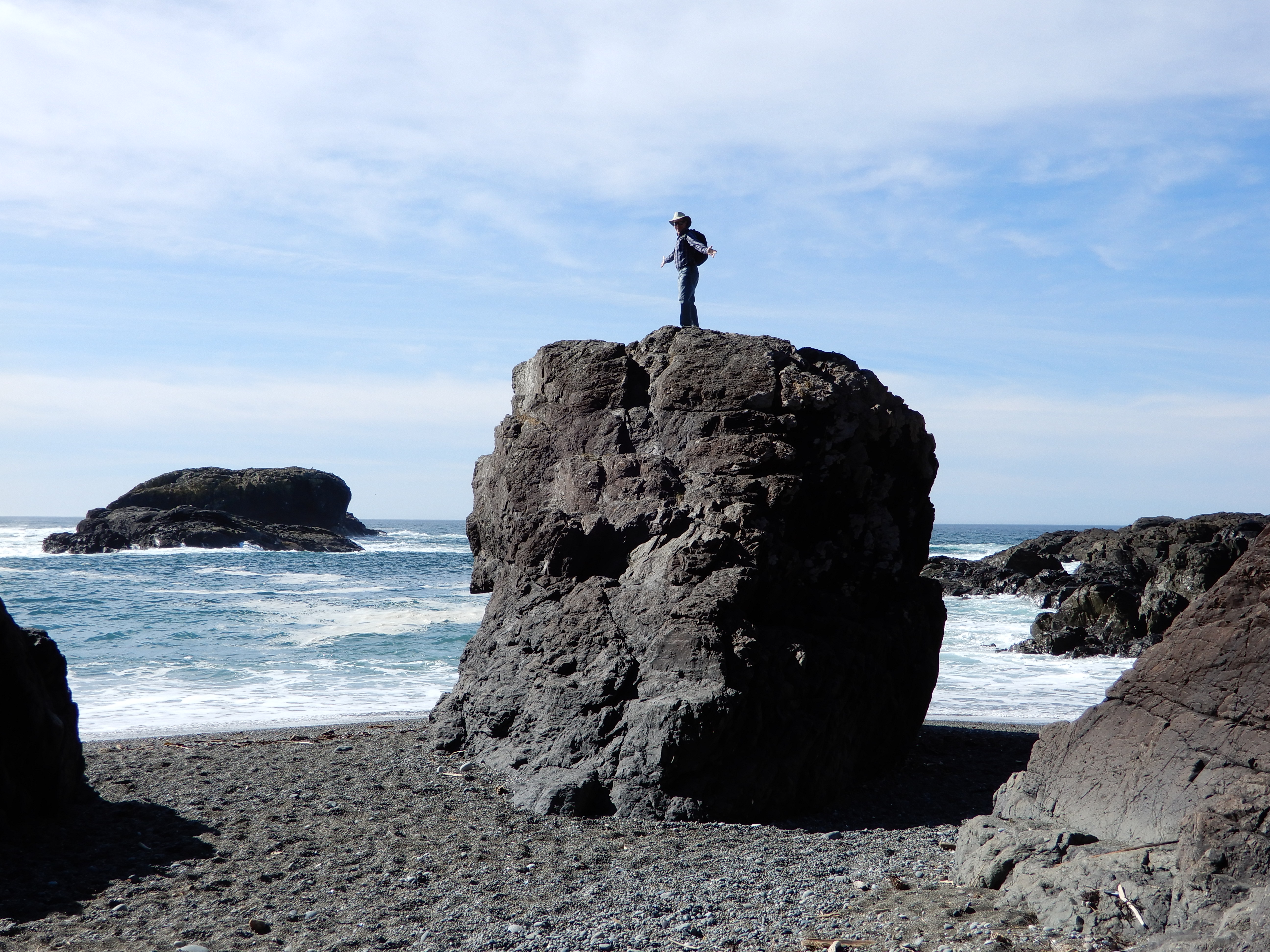 The hike to South Beach is a great option, as it can be a shorter or longer hike, depending how your group feels. Start by the Cultural Centre at Wickaninnish Beach (there’s a National Park fee). There’s boardwalk for part of the way, but the path eventually gets steep for wheels. Follow the trail, past the totem pole. Along the way, there’s a picnic area by a smaller beach. Right before South Beach, a path forks upwards. This is the Nuu Chah Nulth trail towards Florence Bay; it’s 3.8KMs one way, which is the longest hike in the national park. South Beach was great for us, opening up to a rope swing and lots of rocky hideaways to explore.