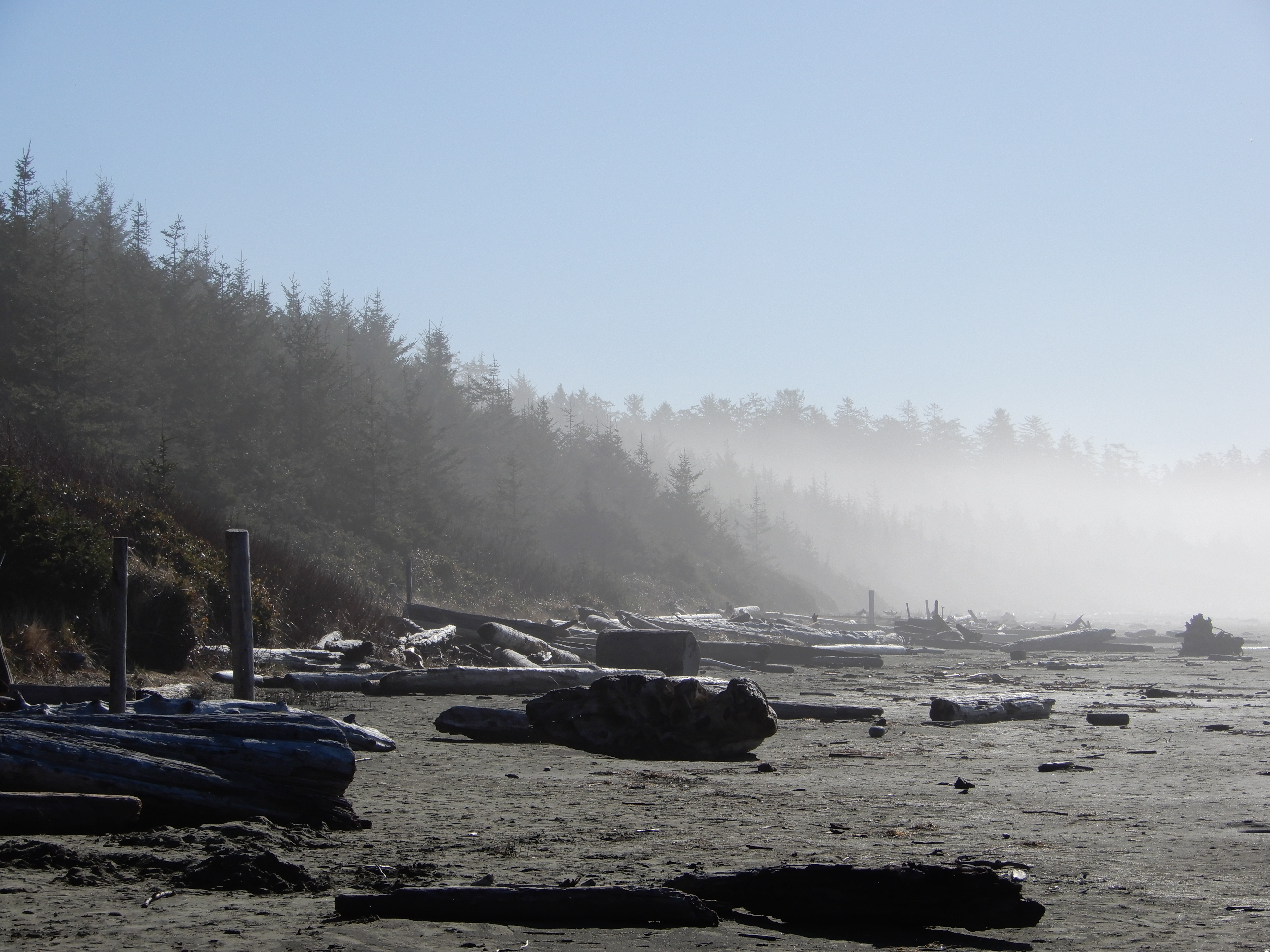 Long Beach is a great stop on the way out: it looks good in the morning mist!