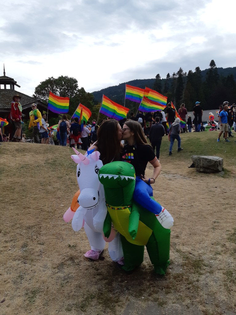 Pride is a great time to come to Salt Spring. Yes, the market’s still on, but it’s after the busiest part of the season. Salt Spring Pride is the ‘coziest’ one I’ve been to! Everyone in town seems to join in the non-motorized parade, which loops a couple of times around market square, and finally filters into Centennial Park. There are a couple of events in the evenings leading up to the parade, like open mics, live music, and community meals and discussions. We went to the dance at Fulford Community Hall, where they had some great, local to BC performers (e.g. Ange Hehr, the Bratpack, Queer as Funk), fun music, a crafty area, comfy mats in a chill corner for resting/drinking your smuggled alcohol, and a silent auction. If you prefer a great party/club scene, SS may not be your top pick. But for a nice queer family/community feel, it’s a great opportunity to combine a unique Pride experience with a visit to a magical island.