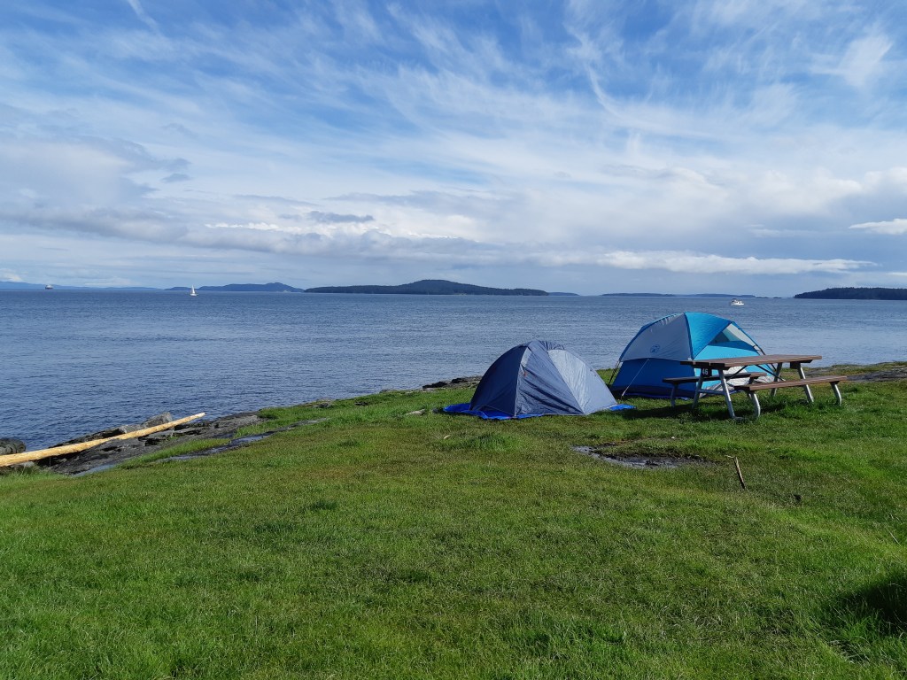 Ruckle Park: stop in for a casual hike along the coast, or stay the night at an ocean-side campsite. Camp sites are mostly first come, first served, and are a short walk (a couple minutes) from the parking lot. They have a few wheelbarrows to borrow to transport your stuff, but they’re often in use. There are about 100 sites in the park, including some for larger groups, and it can be very busy on long weekends. It costs $20 per group, and there are shared fire pits (only a few), water taps (no showers), and outhouses.