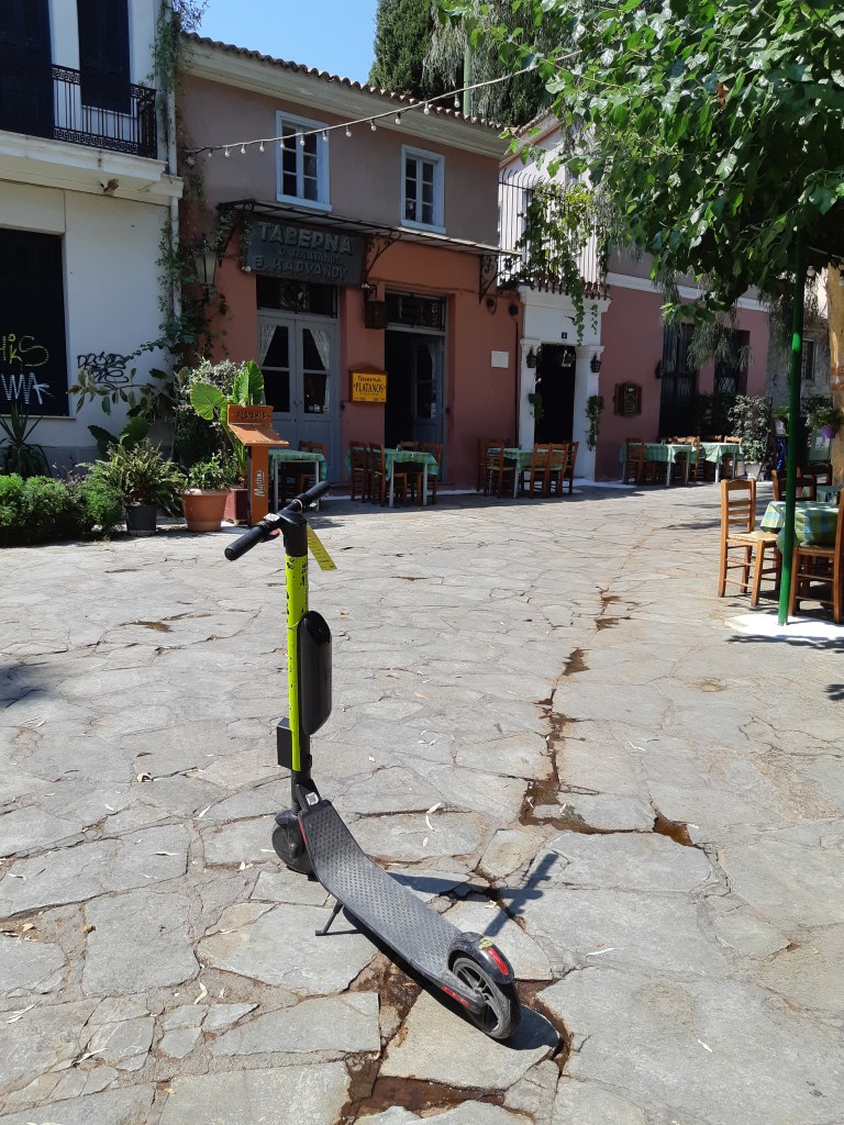 We used the scooters a few times during our 2 day stay in Athens. I wouldn’t really recommend it outside of the tourist-heavy areas (and in those areas, you’re obviously moving around lots of people, so just be aware). The rules are kind of grey – you’re not supposed to be on the street (it’s dangerous – there have been lots of accidents), but the sidewalk doesn’t feel great when you’re manoeuvring around Athenians trying to go about their day. You’re supposed to wear a helmet, but they’re not supplied. Some areas are either too narrow or cobblestoned for fun or safe scootering. Just be cautious, stick to wide sidewalks when possible, and don’t be a jerk!
