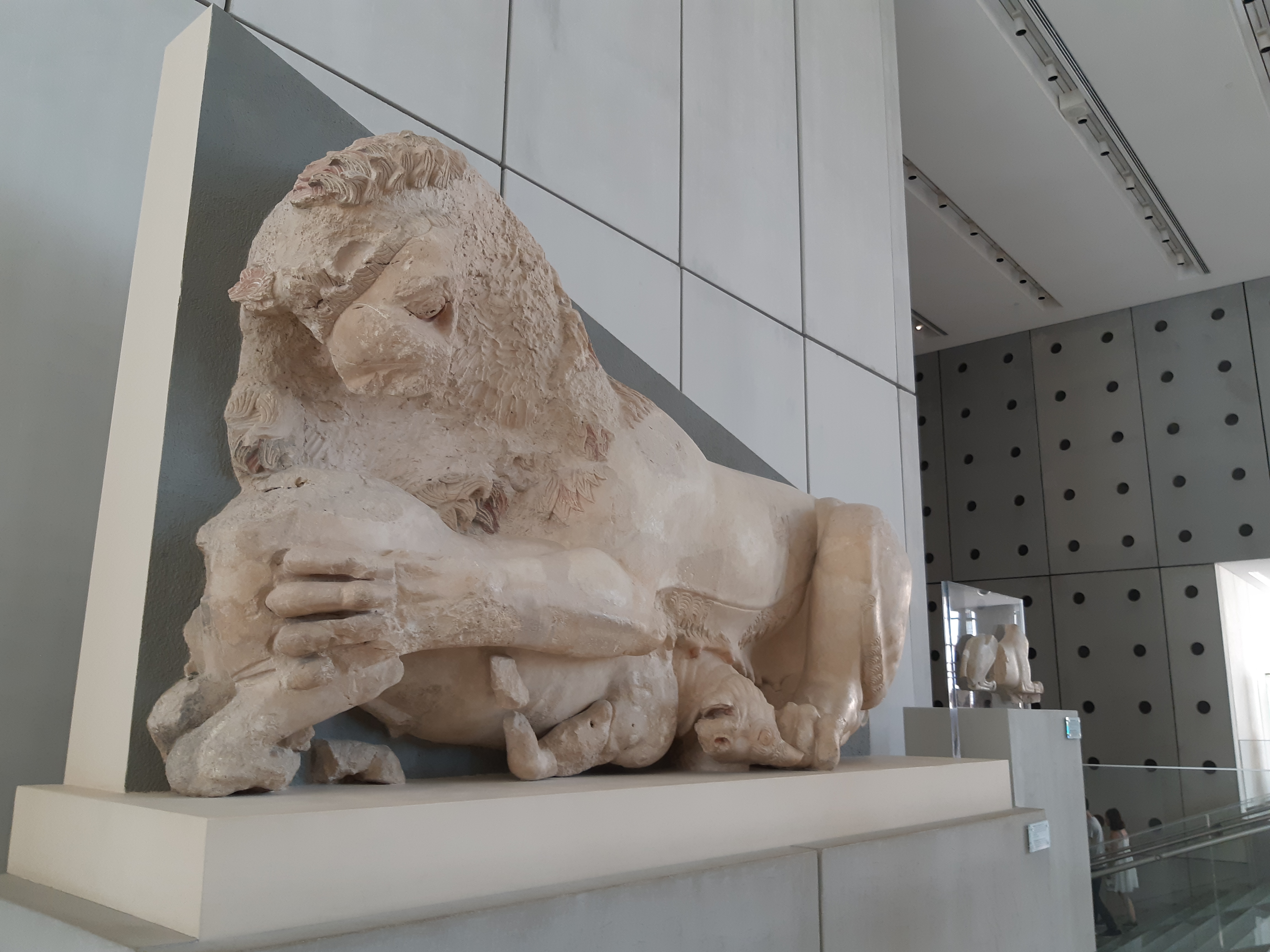 Opened in 2009, the Acropolis Museum is relatively new. Like at the Acropolis, entry is half price with a valid student card. (My card is “valid” only because there’s no date on it, but I try to save money where I can, ok?!) We spent a couple hours in the museum – the AC offers a nice break from the heat. The stories about the artifacts added context to a lot of what we had seen around the Parthenon, with lots of mythology thrown in. Kyla had been brushing up on her mythology too, so she was a good guide. There’s lots to see, including five of the six original Caryatid statues from the Erechtheion. Keep your ticket on you to visit the archaeological excavation site beneath the museum. (I lost mine, oops! We peeked into it from outside, and you can see bits and pieces through the glass floors in the museum.)