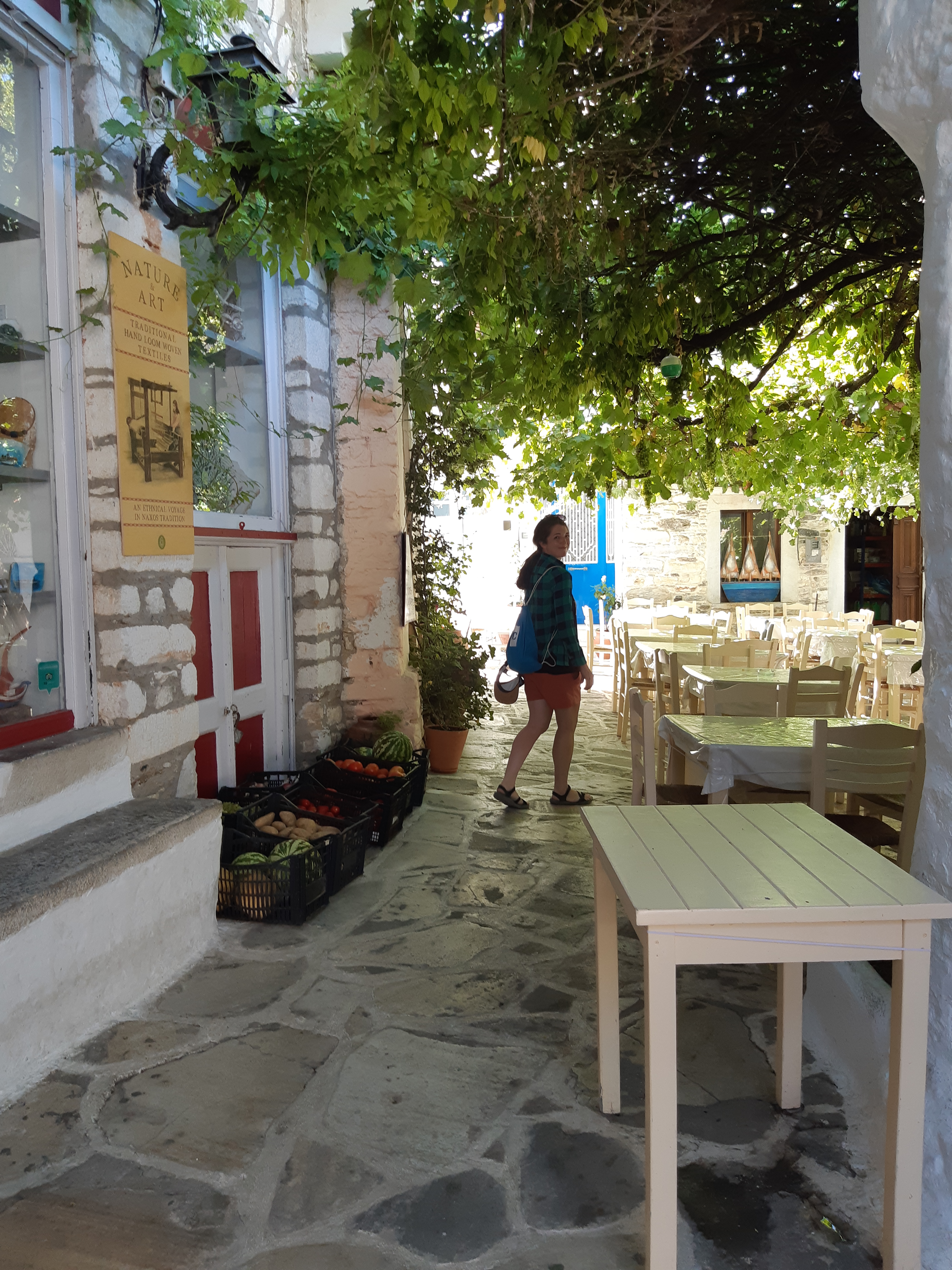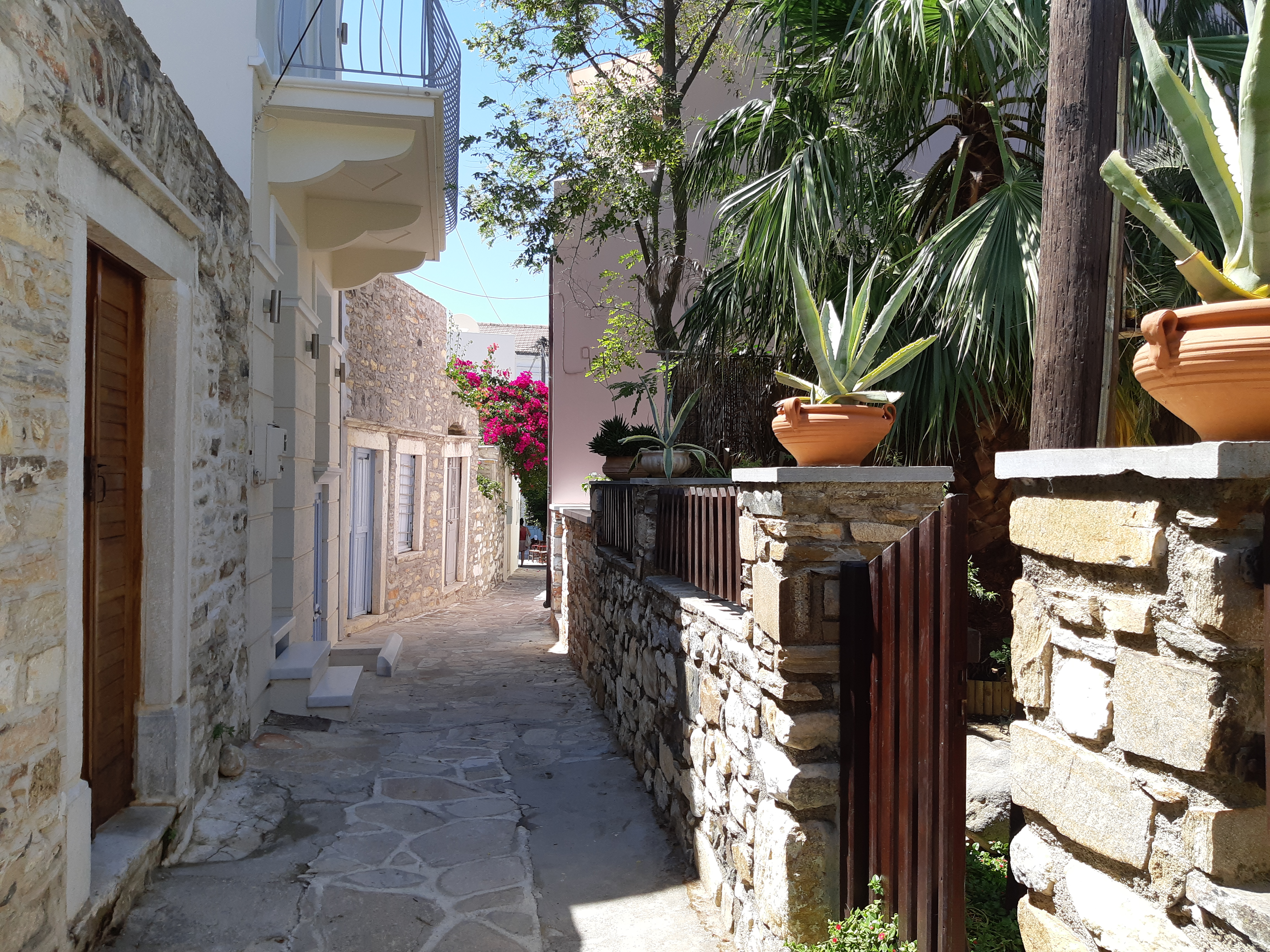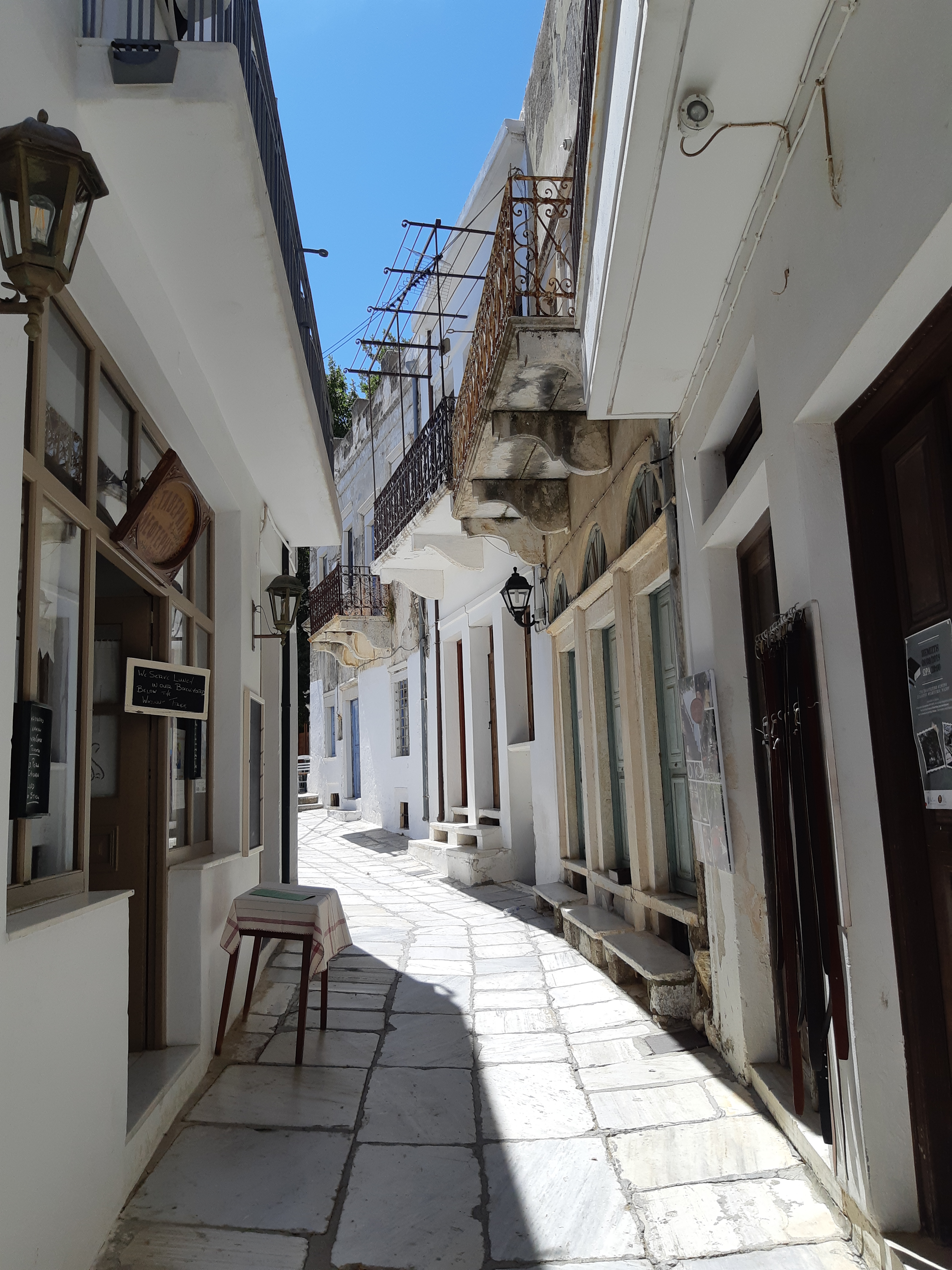 Apeiranthos is paved in marble, and offers great views at 600 m above sea level. If you’re interested, it boasts several museums, and is very photo friendly, with stone towers and Venetian architecture. Plus… cafes and restaurants: the views are best enjoyed over ice cream, I can vouch for that!